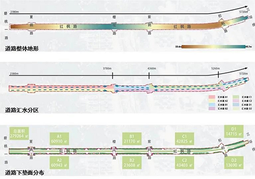 同时构建智慧监测系统,保证海绵体系的正常运转。相比传统建设模式,使红枫路场地内雨水管理效率及其生态效益得到大幅度的提高,降低道路排水负荷与后期维护成本,树立区域道路型海绵城市建设标杆。