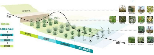 设计基于GIS地形及汇水分析,梳理出场地雨水汇流路径并对其进行分区管控。雨水径流通过雨水花园、下沉式绿地、生态排水沟等海绵设施得到导排、滞蓄及净化,将年径流总量控制率提升至75%,径流污染削减率达到59%以上。