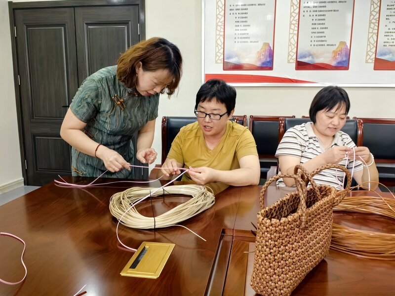 bob官网首页:“藤”趣进学苑巧手承非遗——泰山区学苑社区展开藤编技艺体会活动